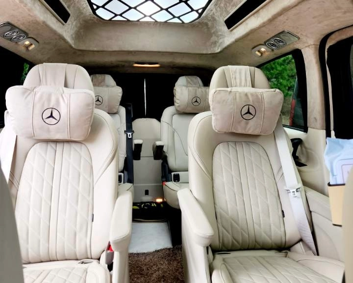 미니밴의 끝판왕이라 불리는 V-클래스 하이리무진은 비즈니스 파트너 접대, 골프 투어, 특별한 가족 여행에 가장 완벽한 해답을 제시합니다. VVIP 전동 시트: 2열과 3열에 배치된 4개의 독립형 전동 리클라이닝 시트 (최상의 안락함 제공)